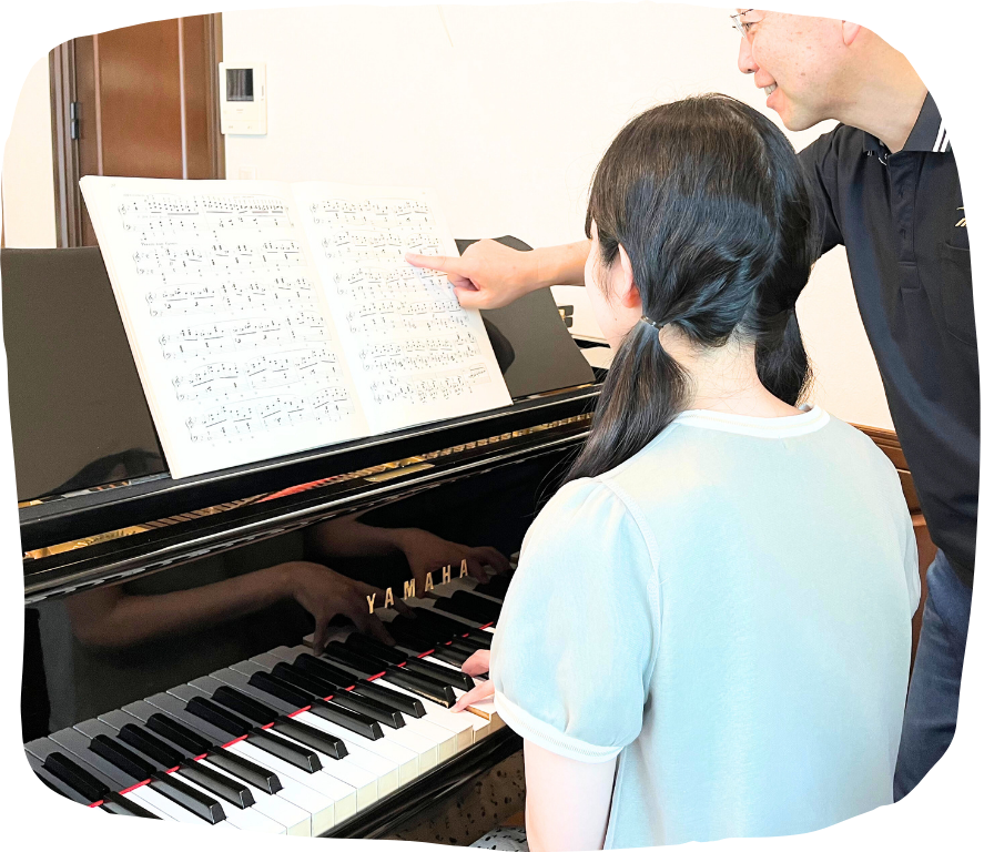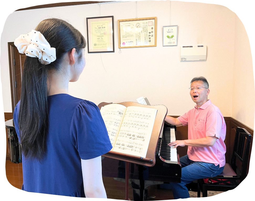 ピアノは「ド」の位置を探すところから、声楽は「腹式呼吸」の基礎から、わかりやすく丁寧に進めます。